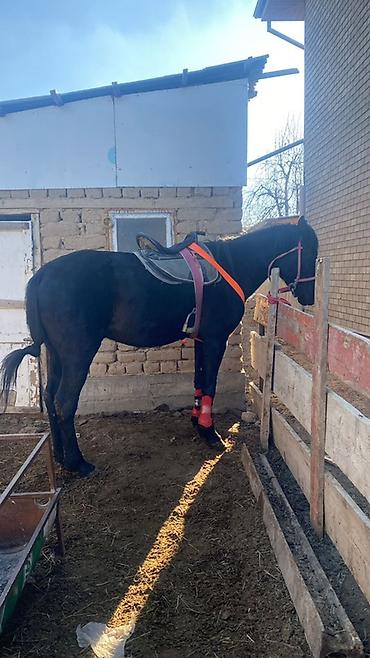 Айгыр (жеребец), верховой тип. Основные характеристики: - Возраст: 3 асый - Рост в холке: 160+ см - Порода/масть: кара байыр - Поведение: работоспособный, управляемый, реагирует на поводы и голос ...