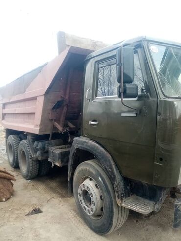 КамАЗ самосвал 6x4 - Классический трехосный самосвал КамАЗ с металлическим кузовом. - Конфигурация: 6 колес сзади сдвоенные, привод на задние оси (6x4), односекционная кабина над двигателем. - Куз...