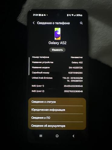Смартфон Samsung Galaxy A52 (голубой) 🔥 РЕАЛЬНОМУ КЛИЕНТУ УСТУПЛЮ🔥 Есть выгорания на экране почти не видно и отклеиваются задняя крышка это произошло из-за плотного чехла Доставка по всему Бишкеку...
