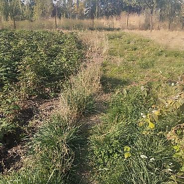 - Посадки малины (ухоженные ряды), есть плодовые деревья
