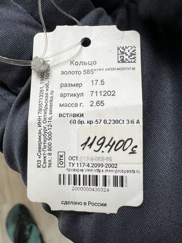 Кольцо с натуральным бриллиантом - Центральный камень: бриллиант Natural Diamond - Масса бриллианта: 0.50 ct (указано в сертификате) - Посадка: классическая корона с шестью лапками - Оправа: белое...