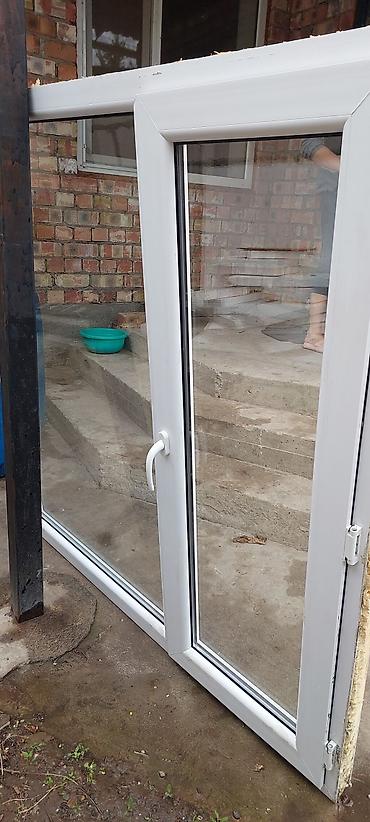 - Пластиковое окно/портал из ПВХ, двустворчатое: одна створка глухая, вторая поворотно-откидная с ручкой и фурнитурой. Белый профиль, двухкамерный стеклопакет, уплотнители целые. Подходит для остекления террасы, балкона, летней кухни.