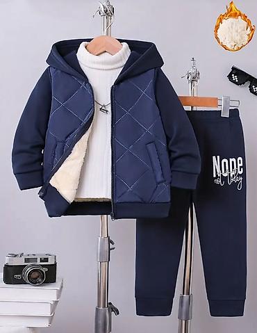 - темно-синий комплект с курткой на молнии и стеганой отделкой, овечий мех внутри