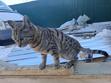 - Окрас: тигровый (пёстрый табби) с чёткими тёмными полосами и пятнами, хвост с контрастными кольцами.