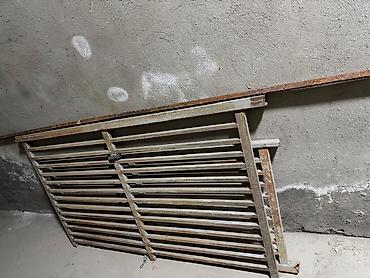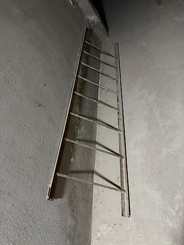 - В комплекте несколько секций решётки из стального профиля с горизонтальными планками, а также узкая металлическая лестница/скоба с поперечными прутами из арматуры.