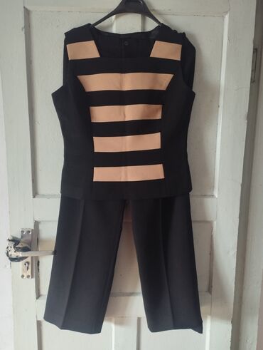 Женский комплект из трех предметов: жакет, брюки и топ. Брюки прямого кроя. Подходит для офиса, встреч и топ. Одевала только один раз, в отличном состоянии. Размер XL Цена 1500