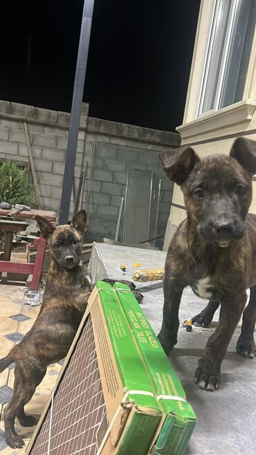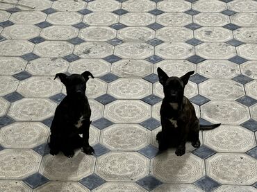 Щенки средних размеров, окрас темный (черный/тигровый) с белыми пятнышками на груди. Уши стоячие, мордочки компактные, лапы крепкие — активные и внимательные. Подойдут для квартиры или частного дома.