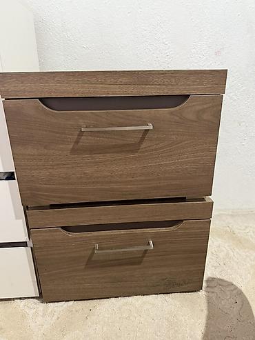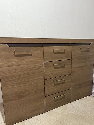 - Комод с центральным блоком из четырёх выдвижных ящиков и двумя боковыми отделениями с дверцами — под хранение белья и аксессуаров.