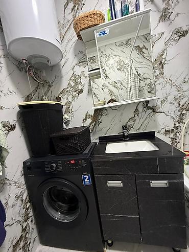 Габариты: стандартная узкая фронтальная модель (ориентир по фото — под столешницей тумбы, высота около 85 см).