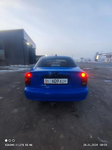 Ассаламу алейкум Шевроле Ланос Год-2006 объем 1.5 простой мотор Газ+Бензин состояния жакшы ватсап.Синий седан Daewoo Lanos (рестайлинг), компактный городской автомобиль.