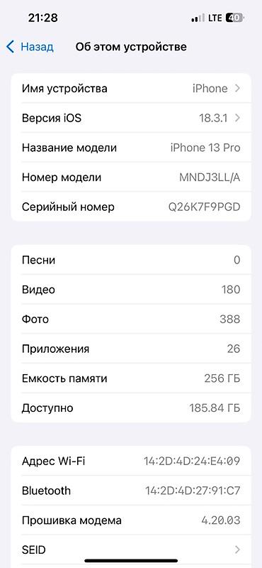 - Модель: iPhone 13 Pro (Model Number MNDJ3LL/A)