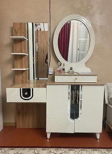 Туалетный столик, Б/у, С зеркалом, цвет - Бежевый, Дерево