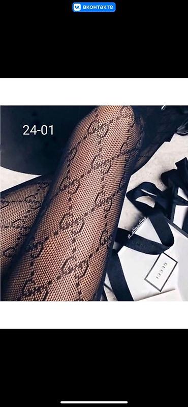 Капроновые колготки в сетку с геометрическим узором и монограммным мотивом.