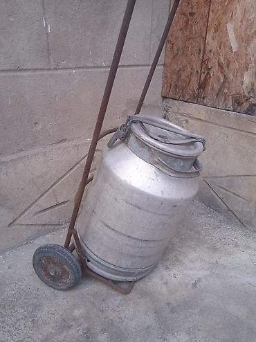 Алюминиевая молочная фляга с герметичной крышкой и защёлкой + ручная тележка для перевозки.