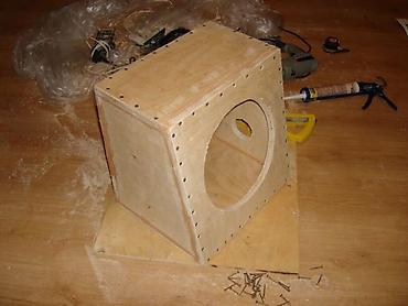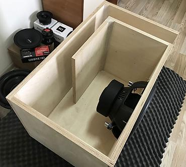 Автомобильный сабвуферный комплект. Состав: - Сабвуфер в массивном закрытом корпусе (ящик с фронтальной решёткой и декоративной графикой). - Усилитель ACV, установлен сверху корпуса. - Проводка пи...
