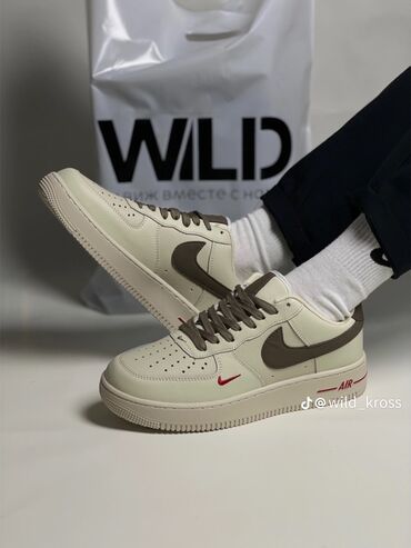 - Детали дизайна: крупный боковой Swoosh тёмно-коричневого цвета, дополнительный мини‑Swoosh красного цвета на внешней стороне, контрастная коричневая шнуровка и язык, перфорация на мыске для вентиляции