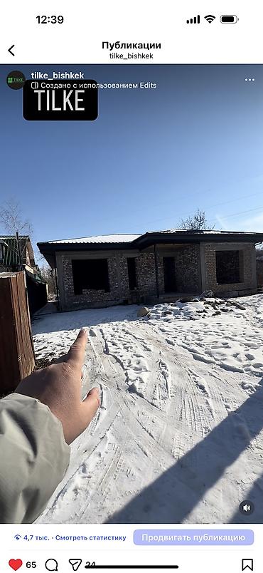 Таш Мойнок сонун локациядан үй сатылат!!! Заманбап Райт стилинде салынган Жалпы бөлмөлөр: - 50 м2 зал студия - 2 даана балдар бөлмөсү 13м2 - мастер уктоочу бөлмө өзунун гардеробу жана сан узели мен...