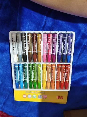 - Набор масляной пастели: 24 цвета. Яркие пигменты, равномерное нанесение, стержни шестигранной формы, подписанные цвета (в т.ч. White, Black, Gray, Vermilion, Carmine, Lemon Yellow, Yellow Ochre, Rose, Red Purple, Purple, Blue, Cobalt Blue, Sky Blue, Pale Green, Grass Green, Yellow Green и др.). Подходит для рисования, набросков и учебы.