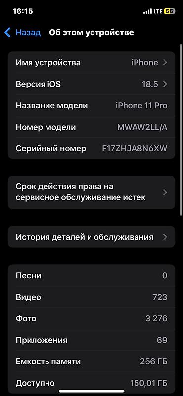 IPhone 11 Pro, Б/у, 256 ГБ, Matte Midnight Green, Наушники, Зарядное устройство, Защитное стекло