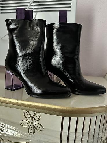 Женские ботильоны с акцентным каблуком - Материал верха: чёрная