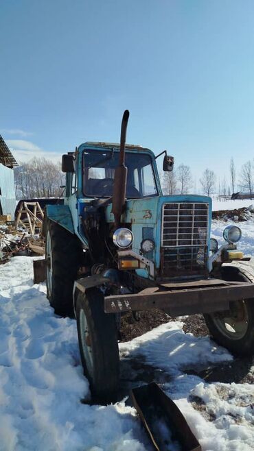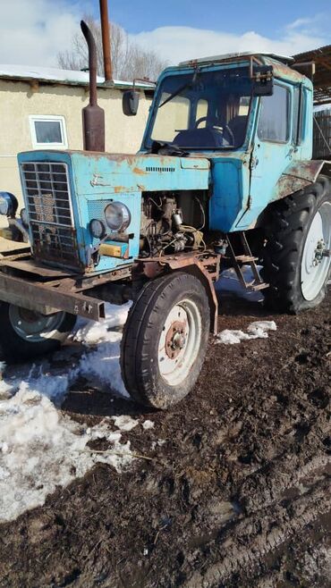 Трактор колесный, класс тягловости примерно 1,4–2,0. Кабина остекленная, высокая труба выхлопа. Передняя балка усиленная с площадкой под навесное/бампер, передние фары и габариты на кронштейнах. Радиатор с крупной решеткой, механический двигатель (дизель), доступ к узлам спереди. Колеса: задние – широкие сельхозшины, передние – узкие. Лестница для подъема в кабину, зеркала заднего вида, стеклоочиститель. Задняя часть предназначена для работы с навесным оборудованием (плуг, борона, прицеп и т. п.). Подходит для полевых и хозяйственных работ, вспашки, транспортировки грузов по ферме и в хозяйстве.