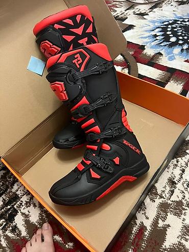 Подойдут для кроссовых, питбайков, эндуро и квадроциклов. Цвет: черный с красными вставками. Размер и точные замеры уточняйте по стельке/голенищу.