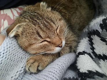 - Спокойный, ласковый темперамент: любит спать, сворачиваться клубочком в пледе, с удовольствием проводит время рядом с людьми.