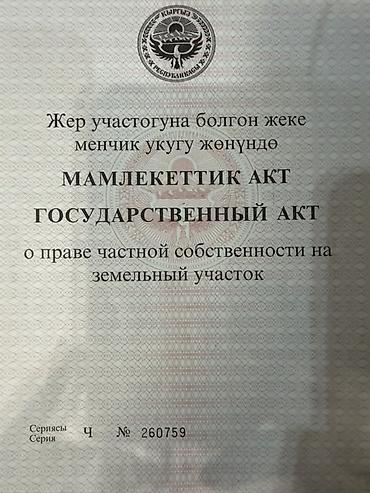 Земельный участок с государственным актом о праве частной собственности (КР). Назначение по документам: для строительства дачи. расположен в Караколе возле горнолыжной базы