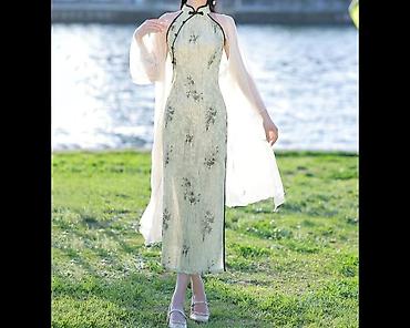 Платье в восточном стиле (чипао/ципай) миди длины.