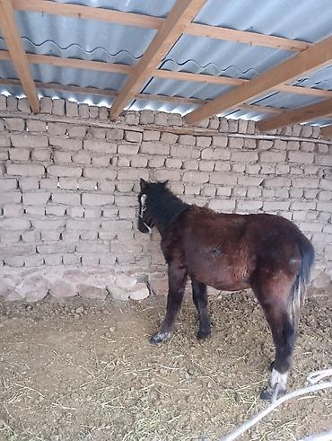 Молодой жеребёнок, темно-гнедой масти с белой отметиной на морде и белыми «носками». Содержится в крытом хлеву, приучен к недоуздку и верёвке. Подходит для дальнейшего выращивания под верховую или упряжную работу.