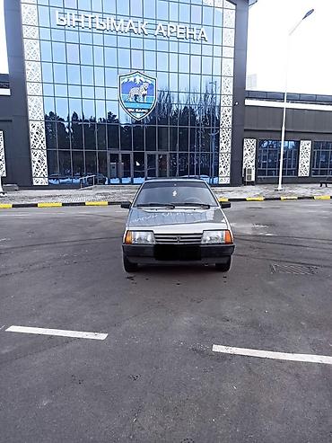 ВАЗ 21099 (седан, 4 двери), серебристый цвет. Основные особенности: - Кузов: классический седан с прямыми линиями, пластиковыми бамперами, тонированными стёклами, наружными зеркалами в цвет чёрный...