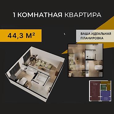 1‑комнатная квартира 44,3 м² в ЖК ASGARD, г. Токмок