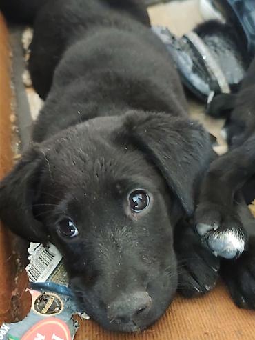 2 Щенка, мальчик и девочка, метисы лабрадора/дворняжки, черного окраса. Оба родителя крупные