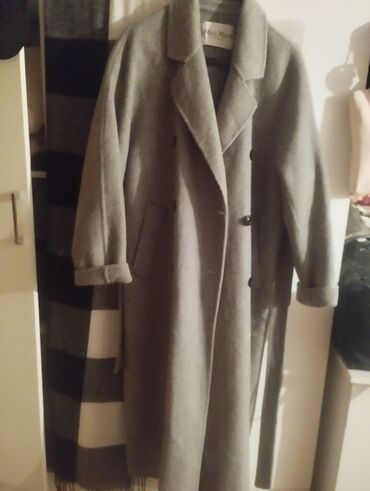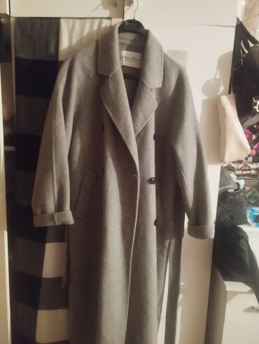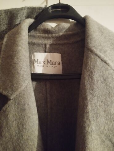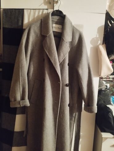 Max Mara — женское пальто-шинель, Made in Italy. - Модель: двубортное длинное пальто с английским воротником. - Цвет: темно‑серый графит. - Посадка: прямой/оверсайз силуэт, длина миди-макси, рука...