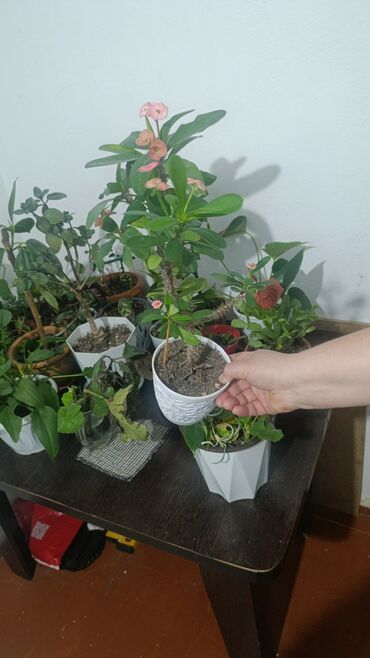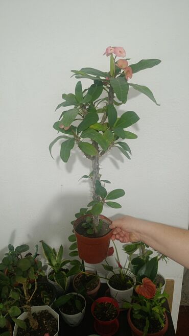 2) Эуфорбия миля (Euphorbia milii, «Молочай Милля / Венок Христа») — несколько экземпляров разной высоты.