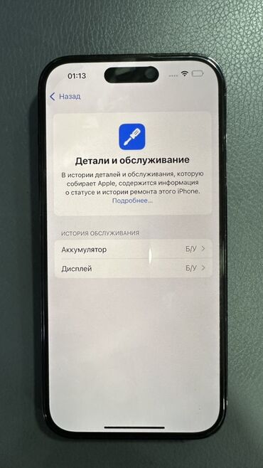 - В разделе «Детали и обслуживание»: отмечены «Аккумулятор — Б/У», «Дисплей — Б/У».