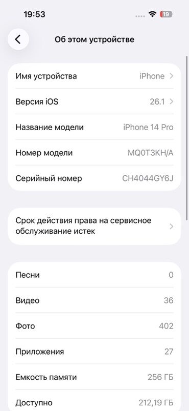 - Память: 256 ГБ (доступно около 212 ГБ на момент снимка экрана).