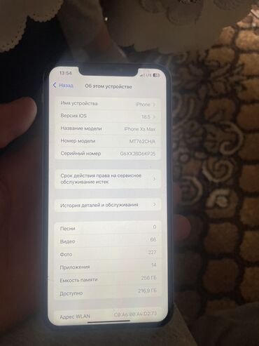 - Память: 256 ГБ (доступно ~216,9 ГБ)