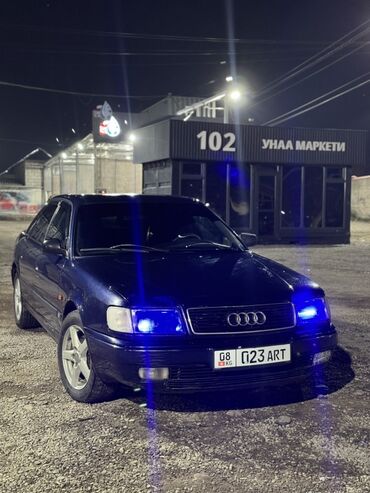 Audi 100 C4, седан, темно-синий цвет. Под капотом рядный 5-цилиндровый бензиновый двигатель Audi (инжектор), продольное расположение, механический впрыск, оранжевый щуп масла. Передний привод. Ради...