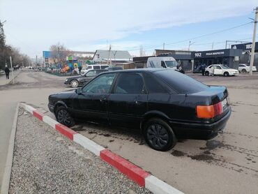Audi 100 C4, седан, черный цвет. Киргизские номера (08 KG, 864 ARZ). Кузов и экстерьер: - Классический дизайн C4, широкая решетка радиатора с логотипом Audi - Черные литые диски - Тонированные сте...