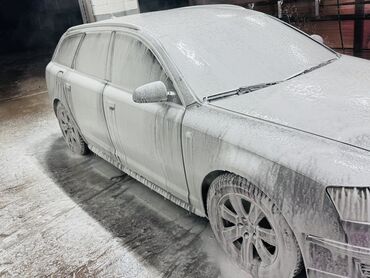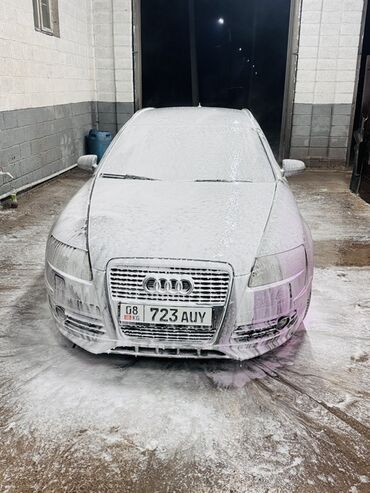 Audi A6 Avant (универсал), серебристый цвет кузова. Номерные знаки KG 723 AUY. Бейджи на кузове: A6 и 3.2.