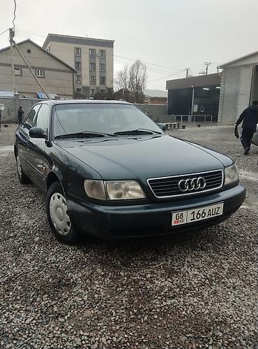 Audi A6 C4, седан, темно‑зеленый цвет. Бензиновый двигатель 2.6 (эмблема «E 2.6» на крышке багажника), передний привод. Кузов классической формы C4 с оцинковкой, 4 двери, 5 мест.