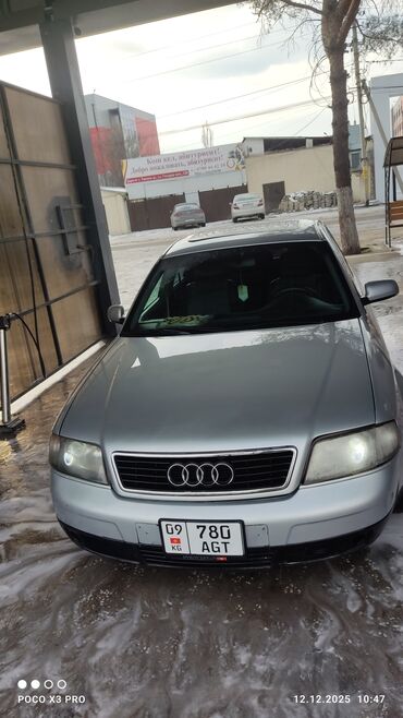 Audi A6 C5, седан, серебристый цвет кузова. Киргизские номера (KG, 08 регион). Кузов: 4 двери, тонированные стекла, легкосплавные диски, задние парктроники, боковые зеркала в цвет. Экстерьер: ф...