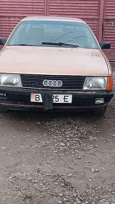 Автомобиль Audi 100, седан, выполненный в бежевом цвете. Модель принадлежит к поколению C3, выпускавшемуся с 1982 по 1991 год. Автомобиль оснащен четырьмя дверями, что обеспечивает удобство посадки...