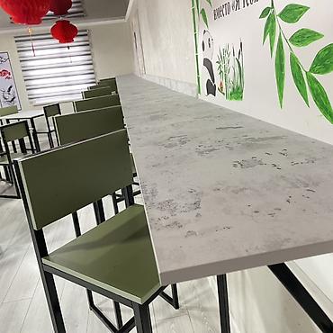 Для кафе общеПит длина 5м ширина стола 40см высота стула 90см 8шт стула