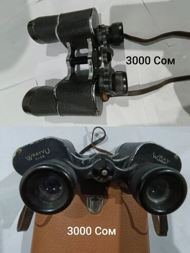 Бинокли (несколько моделей). На фото указаны цены в сомах.