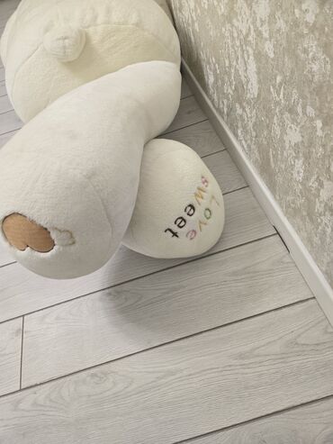 - Материал: мягкий плюш, наполнитель — синтетический (плотный, хорошо держит форму)