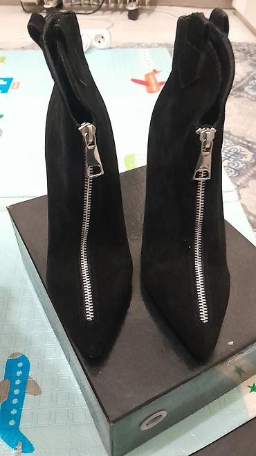 Стильные черные замшевые ботильоны со скрытой молнией по боковой линии подчеркивают щиколотку и визуально удлиняют ножку. Универсальная модель на каждый сезон вне сильных осадков.