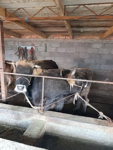 Продаются бычки мясного направления. - Количество на фото: несколько голов в стойле - Окрас: темный, серо‑черный с отметинами - Рога присутствуют - Содержатся в помещении на привязи, кормушка и по...