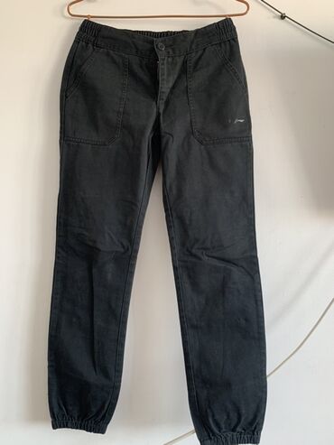 - Пояс: комбинированный — резинка по бокам/сзади + классическая передняя застежка на молнию и пуговицу.